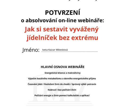 webinář Jak si sestavit vyvážený jídelníček bez extrémů